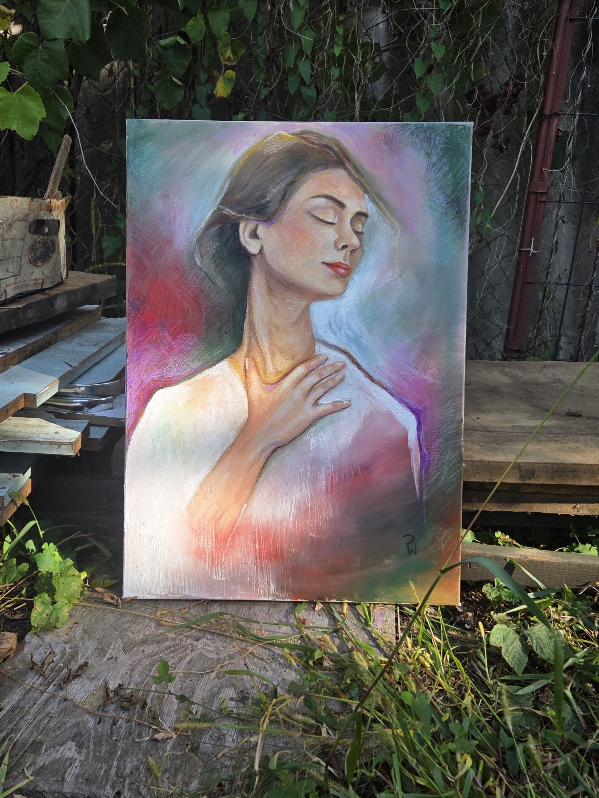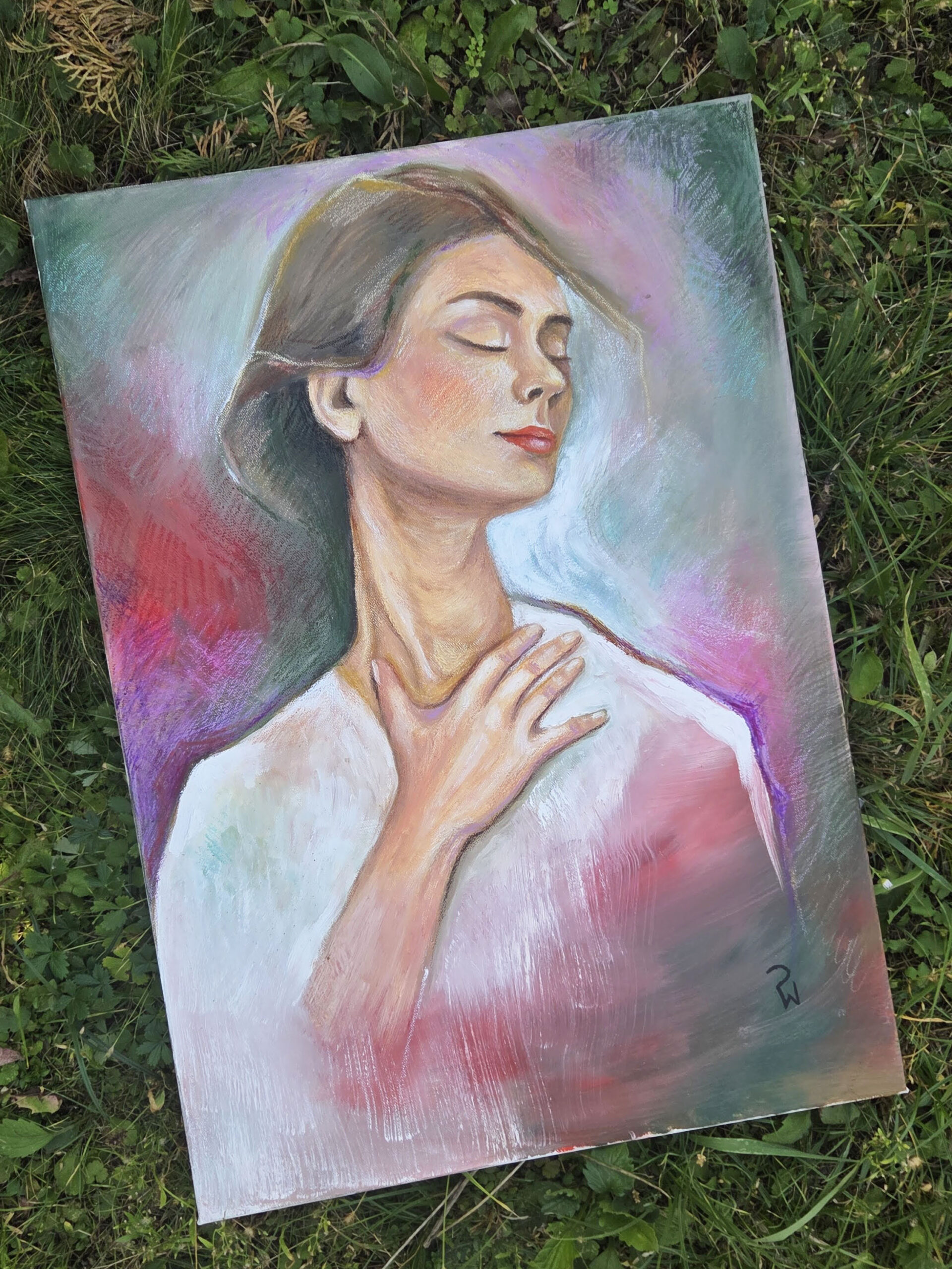obraz został namalowany w 2025r. farbami akrylowymi z dodatkiem pasteli na płótnie malarskim